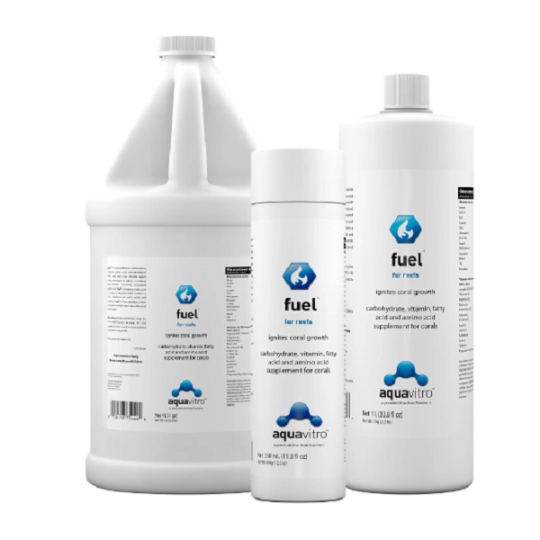 Το fuel™ είναι ένα ολοκληρωμένο συμπλήρωμα υδατανθράκων, βιταμινών, αμινοξέων, πολυακόρεστων λιπαρών οξέων και ιχνοστοιχείων που αναπτύχθηκε για την αντιμετώπιση των διατροφικών απαιτήσεων που συνήθως συνδέονται με τα κοράλλια. Το fuel™ περιέχει ασκορβικό οξύ σε μια βάση χλωρέλλας, η οποία περιέχει μια πλούσια ποικιλία αμινοξέων και βιταμινών. Τα οφέλη της χλωρέλλας για την υγεία είναι ευρέως γνωστά και ενώ η σπιρουλίνα, ένα παρόμοιο φύκος, χρησιμοποιείται τακτικά στη βιομηχανία, το aquavitro είναι το πρώτο που χρησιμοποιεί την εξαιρετικά ανώτερη χλωρέλλα. Το fuel™ έχει σχεδιαστεί για να παρέχει θρεπτικά συστατικά διαθέσιμα από φυσικά νερά τροπικών υφάλων.