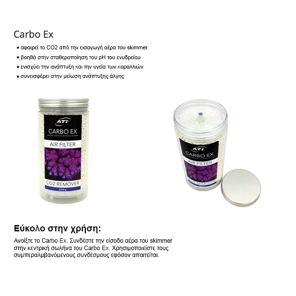 Το Carbo Ex είναι ένα ειδικό φίλτρο αέρα για την αφαίρεση του CO2 απο τον αέρα εισαγωγής του skimmer.