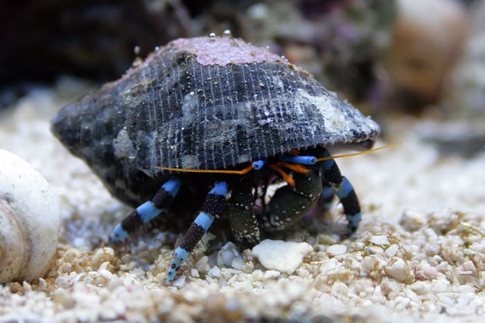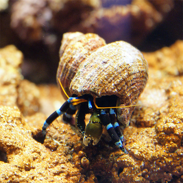 Ο Calcinus Elegans, γνωστός και ως Blue leg hermit, είναι μια πολύ χρήσιμη προσθήκη στο ενυδρείο. Η διατροφή του αποτελείται από πολλές άλγες που μπορεί να γίνουν ενοχλητικές στο ενυδρείο, όπως η πράσινη τριχοειδή άλγη και το κυανοβακτήριο. Είναι συμβατός με κοράλλια, ενδέχεται όμως να επιτεθεί σε σαλιγκάρια για να πάρει το καβούκι τους όσο θα μεγαλώνει σε μέγεθος.
