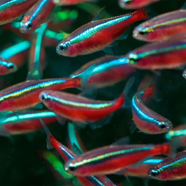 Το Cheirodon axelrodi ή cardinal Tetra έχει μια λαμπερή μπλε νέον λωρίδα που ξεκινάει από τη μύτη μέχρι την ουρά. Κάτω από αυτή τη μπλε λωρίδα υπάρχει μια έντονη κόκκινη λωρίδα. Ένα cardinal tetra μπορεί να διακριθεί από ένα tetra νέον από την κόκκινη χρωματική ζώνη που εκτείνεται σε όλο το μήκος του σώματός του. Στα neon tetra, η κόκκινη ζώνη εκτείνεται μόνο από το μέσο του σώματος μέχρι την ουρά. Τα ενήλικα άτομα θα εμφανίσουν τα καλύτερα χρώματα όταν φιλοξενούνται σε πολύ μαλακό, όξινο νερό.Στη φύση ζουν σε μεγάλα κοπάδια και δεν είναι ασυνήθιστο να τους βρίσκουμε σε ομάδες που αριθμούν εκατοντάδες. Ο εγγενής βιότοπός τους έχει γενικά εξαιρετικά μαλακό, όξινο νερό, συχνά με pH 5 και τρέφονται με σκουλήκια και μικρά καρκινοειδή. .Στο ενυδρείο ζουν σε κοπάδια τουλάχιστον 6 ατόμων κυρίως στα μεσαία στρώματα του νερού.Πρόκεται για παμφάγο είδος και θα δεχθεί τις περισσότερες τροφές εμπορίου.Αυτά τα ψάρια έχουν υψηλές απαιτήσεις σε βιταμίνες, επομένως τουλάχιστον το 75% της τροφής τους πρέπει να είναι ποιοτική τροφή σε νιφάδες. Τα cardinal tetras εκτιμούν ιδιαίτερα τις ζωντανές και κατεψυγμένες τροφές, αλλά εάν τρέφονται αποκλειστικά μπορεί να απορρίψουν τις έτοιμες τροφές αργότερα.