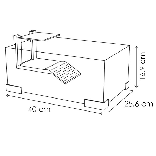 Προκειμένου η χελώνα να ξεκουραστεί και να ζεσταθεί, η tertarium 40 έχει μια ζώνη ξηράς στην οποία η χελώνα μπορεί εύκολα να έχει πρόσβαση μέσω της ράμπας της, η οποία μπορεί να τοποθετηθεί με τρεις διαφορετικούς τρόπους έχοντας εύκολη και αρμονική στερέωση και εμποδίζοντας τη χελώνα να βγει εκτός.