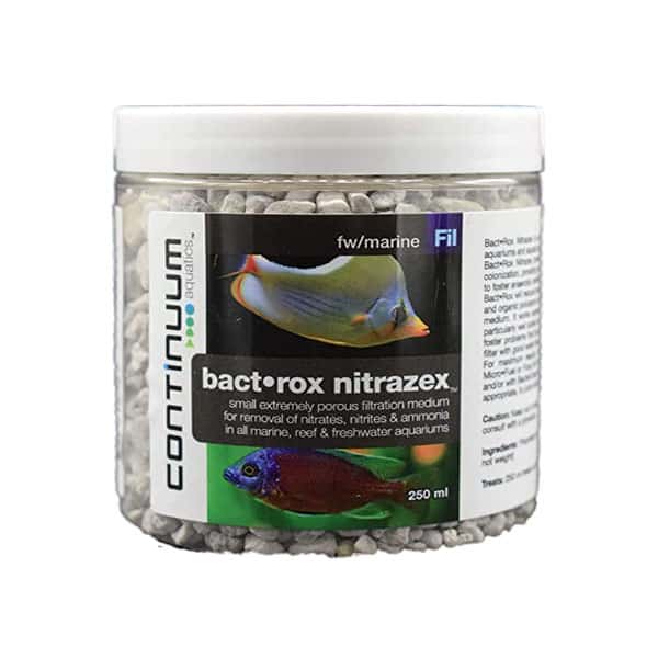 Bact•Rox Nitrazex is an extremely porous filtration medium designed to be used in all aquariums and aquatic systems for bio-filtration and particularly for nitrate removal. Each liter of Bact•Rox Nitrazex provides over 7,500 square feet of surface area internally for bacterial colonization, providing for nitrification and vast amounts of anaerobic or anoxic surface area to foster denitrification.