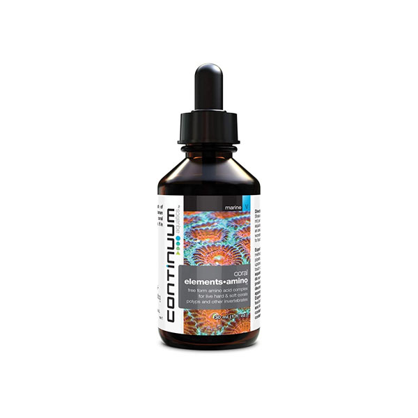 Coral Elements•Amino is a free form amino acid complex that closely replicates the amino acid profile of hard coral tissue. It encourages new coral tissue growth and vibrant coloration, by providing solubilized proteins in a readily absorbable form. It is particularly useful for newly fragged corals or those that have been damaged in shipping, injured, grazed upon or that have been subject to bleaching in that it makes the job of nutrient uptake and tissue repair much easier for the animal. (However, compromised animals may require medication, other nutrients and special treatment beyond what this product can do. No claims are made that such animals will recover.)