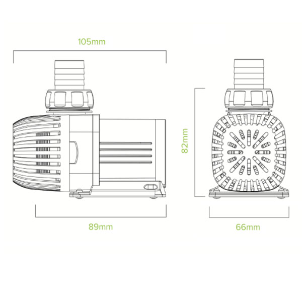 - Dimensions : 89mm (L) x 66mm (W) x 105mm (H) (Not including hose fitting)