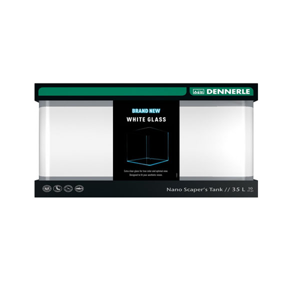 - Dennerle Scaper’s Tank 35L WHITE GLASSThe Scaper’s Tank from Dennerle made of white glass is perfect for a beautiful underwater landscape. With the high-quality transparent glass, the viewer has an ideal look into a wonderful scape. The colours inside are not affected in any way, as the glass is colour-neutral. The distinct dimensions of the Scaper’s Tank create a special depth effect, making it ideal for ambitious scapes. The rounded corners support an additional panorama effect. This makes it possible to realise dreamlike scapes that have a fascinating effect on every observer.Crystal clear tank with panoramic glass