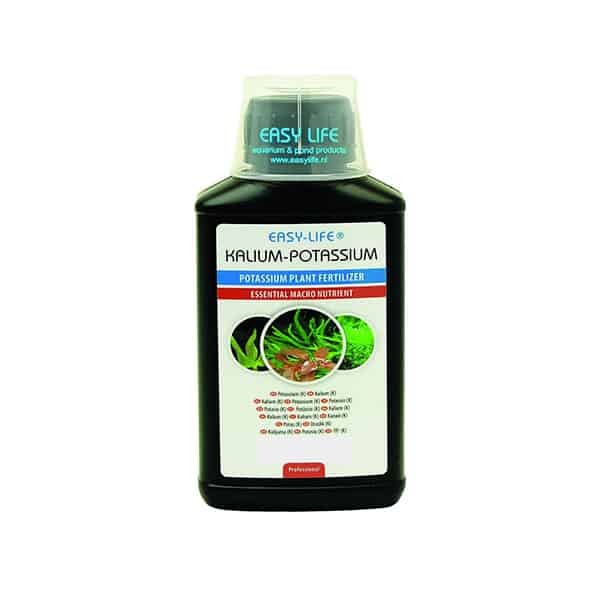 Το Easy Life Kalium/Pottasium είναι ένα βασικό μακροθρεπτικό συστατικό και είναι τουλάχιστον εξίσου σημαντικό με το σίδηρο.Υπάρχει έλλειψη καλίου σε περιοχές με μαλακό νερό,αυτό αποδεικνύεται από τα λευκά, αποχρωματισμένα φύλλα στην κορυφή ενός φυτού. Τα φύλλα μπορεί επίσης να έχουν μαύρες οπές.Αυτά τα συμπτώματα συχνά συγχέονται με τα συμπτώματα ανεπάρκειας σιδήρου. Συνιστάται να προσθέσετε και τα δύο Easy-Life Ferro και Easy Life Kalium/Pottasium για να αντισταθμίσει ή να αποτρέψει τις ανεπάρκειες, ιδιαίτερα σε ενυδρεία με ταχέως αναπτυσσόμενα φυτά.