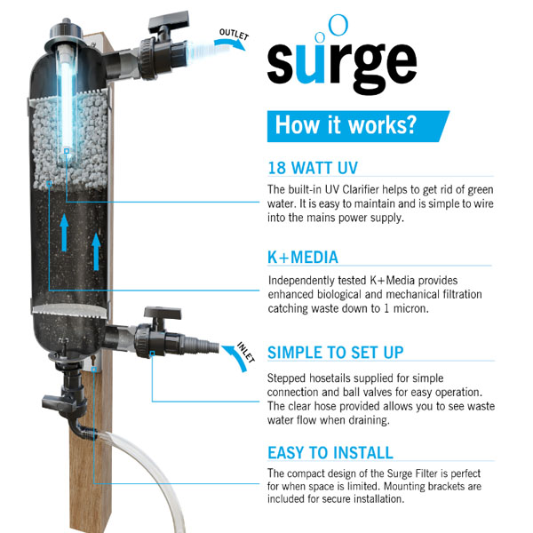 Το Surge Filter είναι ένα καινοτόμο φίλτρο που βοηθά στην παροχή κρυστάλλινου, υγιούς νερού για λίμνες έως 5.000 λίτρα.