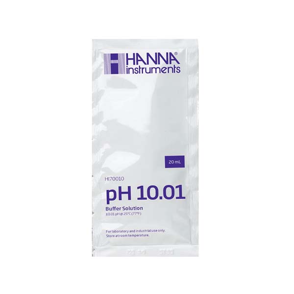 Το ρυθμιστικό διάλυμα Hanna Instruments pH 10.01 buffer solution 20ml HI70010C διατίθεται σε μικρούς και εύχρηστους φακελίσκους των 20ml, ένα από τα πιο συχνά χρησιμοποιούμενα ρυθμιστικά διαλύματα.