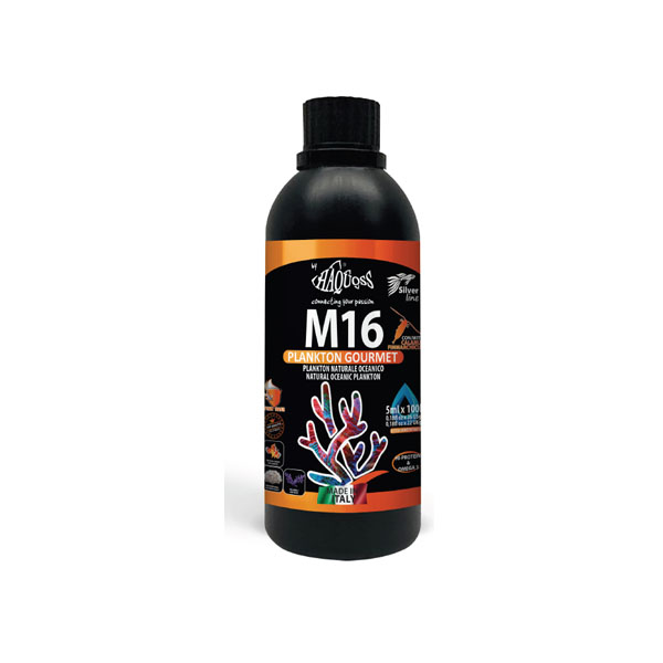 Το Haquoss M16 είναι ένα διάλυμα θρεπτικών ουσιών και διεγερτικό μεταβολισμού για όλα τα LPS κοράλλια λόγω της σύνθεσής του, στην οποία το κύριο στοιχείο είναι το Calanus Finmarchicus (Ζωοπλαγκτόν). Περιέχει υψηλή συγκέντρωση θρεπτικών συστατικών, αμινοξέων και βιταμινών για την αύξηση της ανάπτυξης, αυξάνοντας τη ζωτικότητα και τον χρωματισμό τους.