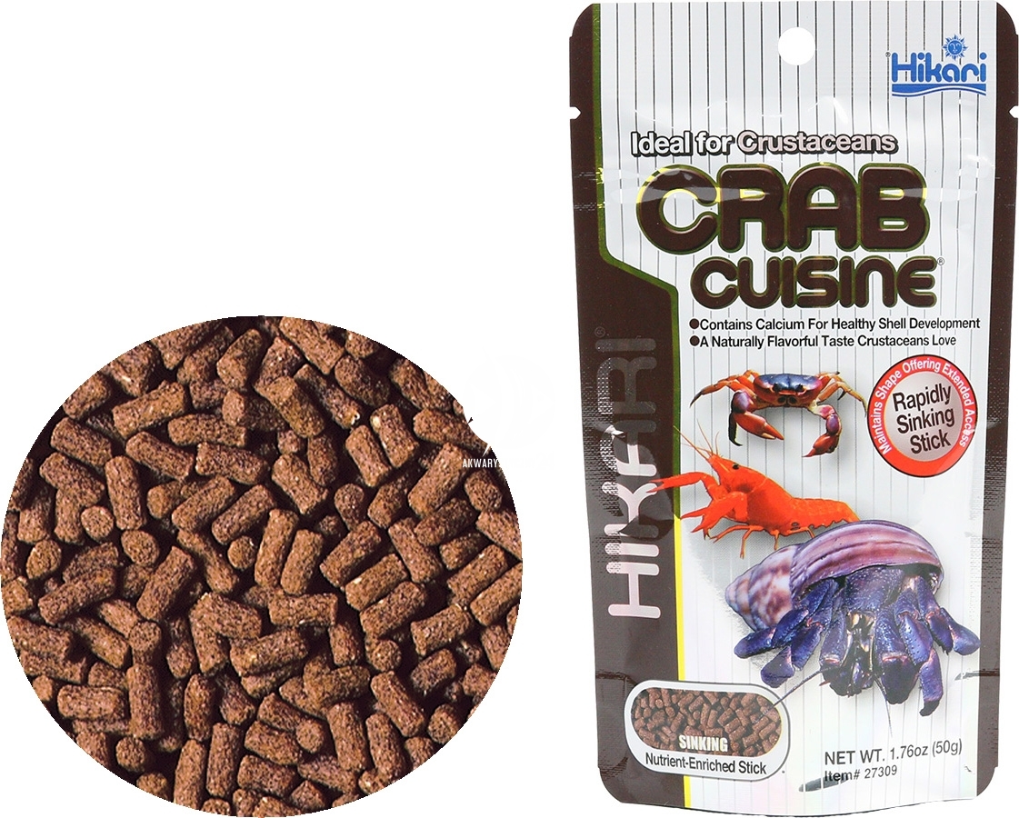 . Η Hikari Crab Cuisine είναι μια βυθιζόμενη, πλούσια σε ασβέστιο τροφή σε μορφή σφαιριδίων που δεν διαλύεται γρήγορα στο νερό. Αυτή η τροφή είναι ιδανική για ερημίτες, αστακούς, καραβίδες και άλλα οστρακοειδή.