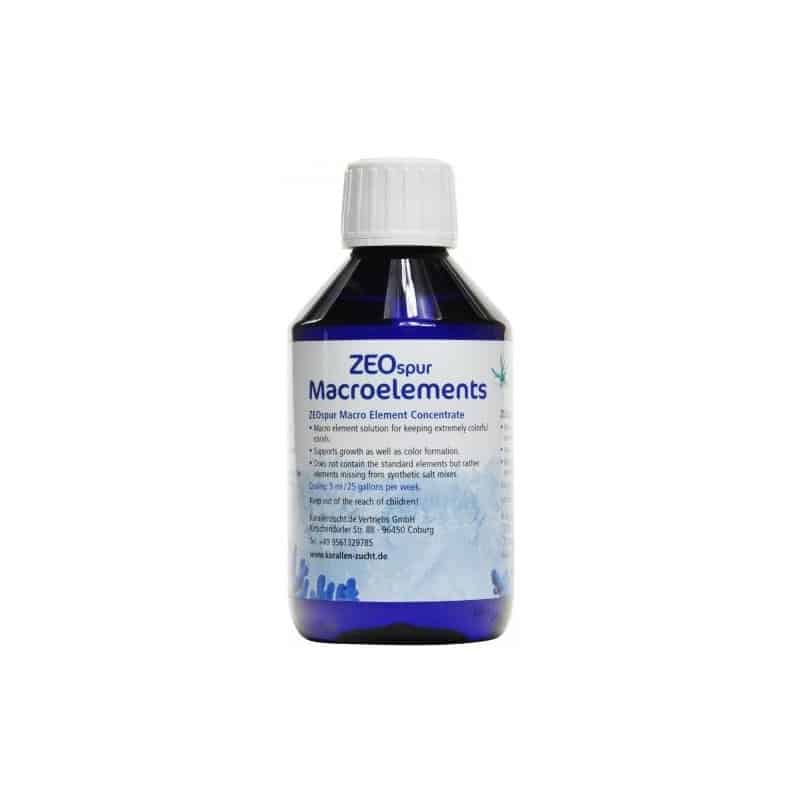 To Zeospur macroelements περιέχει μια πληθώρα ιχνοστοιχείων που βοηθούν στην ενίσχυση του χρώματος των κοραλλιών, όπως Λίθιο, Παλλάδιο, Βορόντιο και άλλα. Βοηθάει επίσης και στην ανάπτυξη ιστού των σκληρών κοραλλιών.
