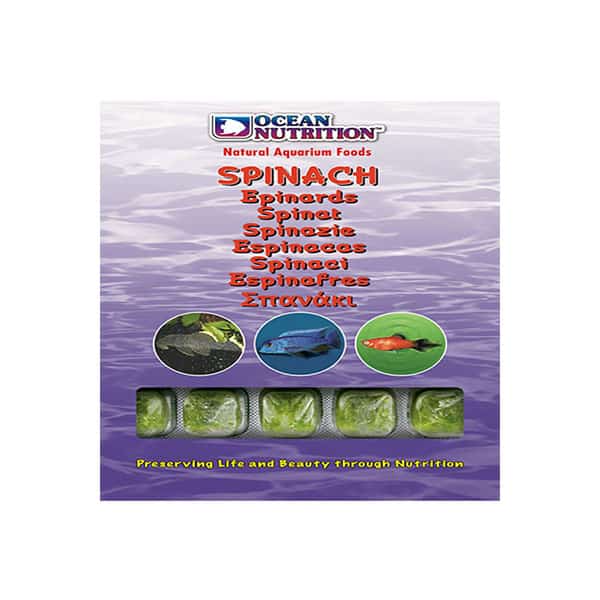 Κατεψυγμένη τροφή αποτελούμενη 100% από ψιλοκομμένο σπανάκι, πλούσιο σε φυτικές ίνες που είναι πολύτιμες για όλα τα είδη των φυτοφάγων ψαριών. Το σπανάκι περιέχει επίσης υψηλά επίπεδα βήτα-καροτίνης, που ενισχύει τα χρώματα των ψαριών.
