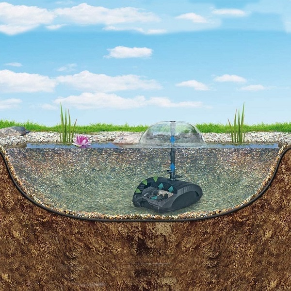Ο συνδυασμός συμπαγούς υποβρύχιου φίλτρου και ενσωματωμένου σιντριβανιού έχει 2 λειτουργίες σε μία: