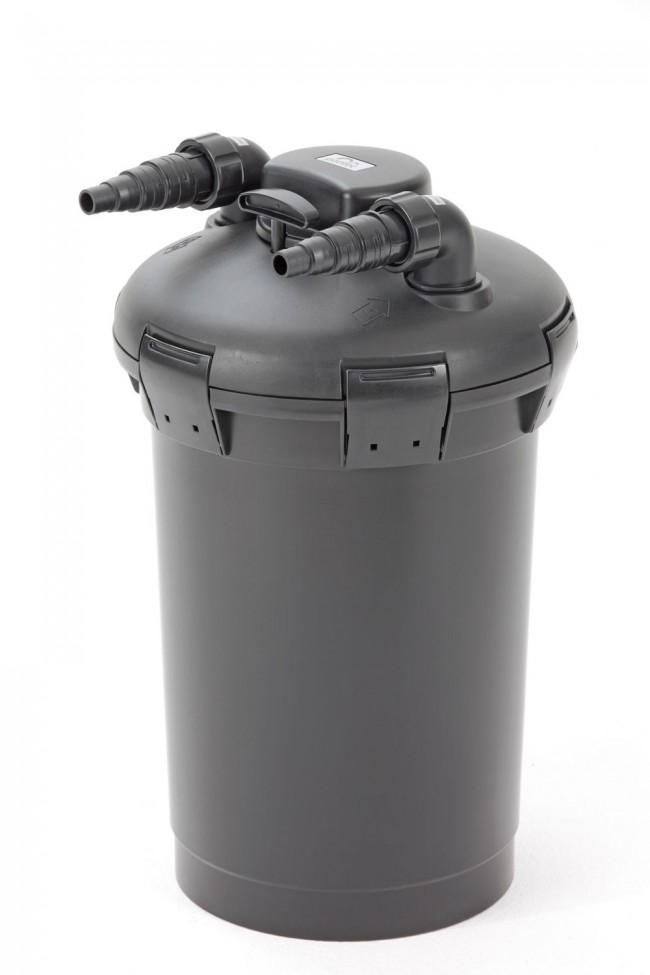 Η σειρά Pondopress αποτελεί μια πλήρη λύση φίλτρανσης της λίμνης, καθώς συνδυάζει φίλτρο πιέσεως, αντλία και λάμπα UVC σε ένα σετ. Τo Pondopress δεσμεύει σωματίδια έως και 4mm από το νερό, ενώ εξουδετερώνει ταυτόγχρονα και ίχνη αιωρούμενης άλγης μέσω της λάμπας UV.  Το φίλτρο μποεί να τοποθετηθεί και μέσα στο έδαφος κοντά στη λίμνη ώστε να μην επεμβαίνει οπτικά στο τοπίο.