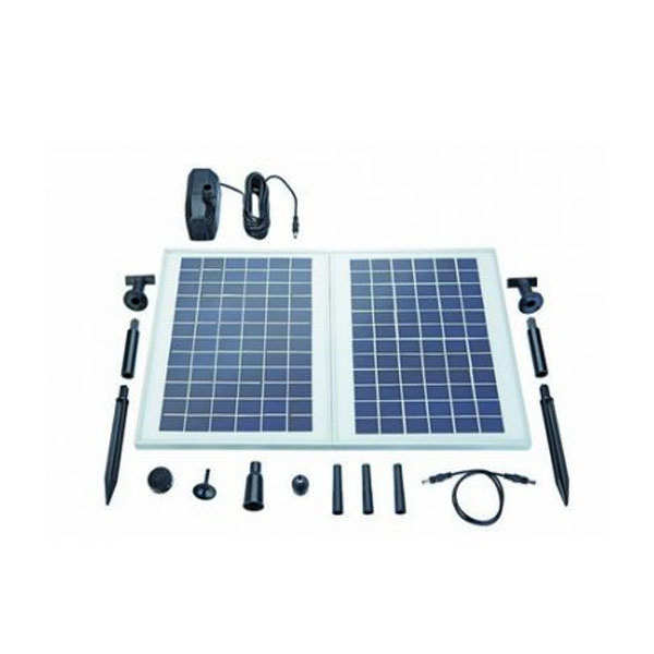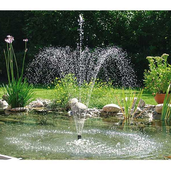 Χωρίς σύνδεση ρεύματος, το σετ ηλιακών σιντριβανιών PondoSolar 1600 εξασφαλίζει εντυπωσιακά σιντριβάνια. Μπορούν να δημιουργηθούν διαφορετικά σχέδια νερού με τις 2 διαφορετικές, εύκολα τοποθετημένες, κεφαλές ακροφυσίων. Το σετ περιλαμβάνει ισχυρή αντλία σιντριβανιού χωρητικότητας 1600 l/h. Το σετ περιλαμβάνει επίσης μονάδα ηλιακού πάνελ (2 x 10 W – 18 V). Έτσι μπορεί να επιτευχθεί μέγιστο ύψος σιντριβανιού 1,8 m.