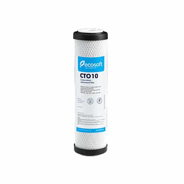 To υψηλής ποιότητας 10” φίλτρο συμπαγούς ενεργού Άνθρακα Βlock (CTO) της ECOSOFT απο κοκκοφοίνικα (Coconut) μειώνει αποτελεσματικά το χλώριο, χημικούς και οργανικούς ρυπαντές και φυτοφάρμακα βελτιώνοντας έτσι την οσμη και γεύση του νερού βρύσης. Ιδανικό για γενική αποχλωρίωση του νερού ως προφίλτρο μονάδων αντίστροφης όσμωσης ή ως φίλτρο συστημάτων ενεργού άνθρακα.