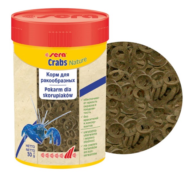 Η sera Crabs Nature είναι η βασική τροφή σε δακτυλίους, χωρίς χρωστικές και συντηρητικά, για όλα τα τα καρκινοειδή γλυκού και θαλασσινού νερού.