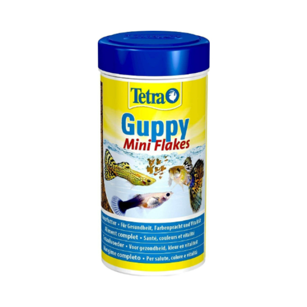 Η Tetra Guppy είναι μια πολύ θρεπτική  τροφή κατάλληλη σε μορφή mini νιφάδων κατάλληλη για τη καθημερινή σίτιση των guppies και των υπόλοιπων ζωοτόκων.  Για όλα τα σμηνόψαρα, υποστηρίζει την υγεία, ενισχύει τον χρωματισμό και τη ζωτικότητα των ψαριών