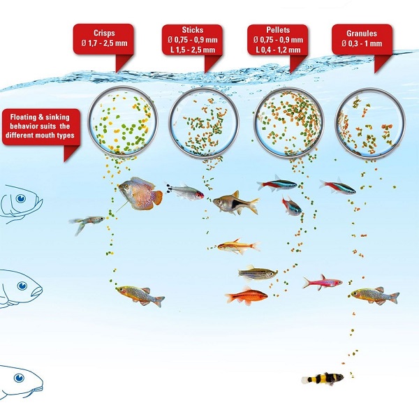 Τροφή σε τραγανές νιφάδες για μικρά διακοσμητικά ψάρια, ως μια ολοκληρωμένη τροφή που επιπλέει και βυθίζεται αργά με πολύ μικρή διάμετρο 1,7 έως 2,5 mm.